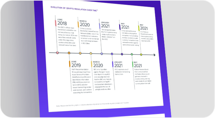 Finally, we expect volatility in the digital asset market to increase preparation for tax season, the Internal Revenue Service estab- with additional government scrutiny and regulations. The last few lished its guidance on reporting cryptocurrency transactions. years brought about the advent of a regulatory infrastructure: Bit Outside the U.S., Singapore, one of the most progressive sovereigns Licenses started in 2015 in New York; the Federal Reserve said 69 towards crypto, is directly funding blockchain projects while China they are considering a potential digital analog for the dollar; and in 70. has made blockchain adoption a state priority . 71 evolution of crypto regulation over time june march january may may 2018 2020 2021 2021 2021 The SEC’s o昀케cial says China Launches Anchorage becomes China banned 昀椀nancial U.S. Treasury that bitcoin and ether are Blockchain-based Service the 昀椀rst cryptocurrency institutions and payment Department seeks to not securities but that Network (BSN)- one of the company to receive a companies from providing have cryptocurrency many, but not all, ICOs are 昀椀rst blockchain networks federal charter from services related to crypto- transfers above $10k securities and will come to be built and maintained the OCC currency transactions and reported to IRS under the regulatory by a central government- warned investors against control of the SEC and in 100 Cities speculative crypto trading relevant securities laws june march january may 2019 2020 2021 2021 FATF Recommendation SEC wins injunction OCC approves use of Federal Reserve Board 16 issued requiring Virtual against Telegram block- stablecoins for banking Chair announced that Asset Service Providers chain launch in key ICO transactions the Federal Reserve will (VASPs) to share Personal case as judge deemed get more involved in Identi昀椀able Information that the SEC was likely to cryptocurrency and may (PII) and Know-your-cus- succeed in proving that even create its own digital tomer (KYC) data be- the blockchain’s developers currency down the road tween transacting sender engaged in the sale of and receiver users before unregistered securities executing the transaction. Note: Please note that this graphic is not exhaustive but only indicative of the notable regulatory events over this period headline Paul Tudor Jones Letter - May 2020 “The most compelling argument for owning Bitcoin is in the coming digitalization of currency everywhere, accelerated by COVID-19, Bull markets are built on an expanding universe of buyers. Central to the price of Bitcoin is how many more (or less) owners of Bitcoin will there be beyond the 60M who currently own it... Something 72 appears wrong here and my guess is it is the price of bitcoin” . CRYPTOCURRENCY ADVANCES TO THE MAINSTREAM SHARE VISIT PG 43